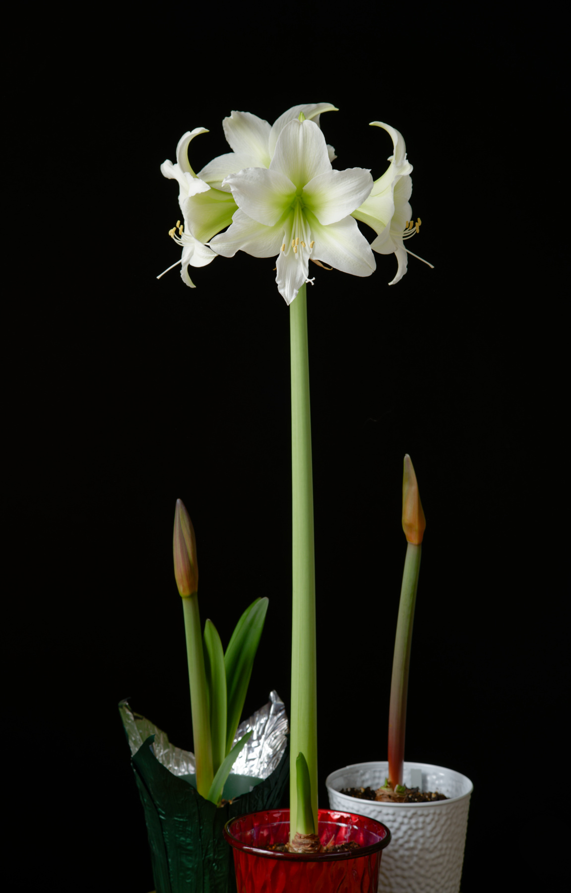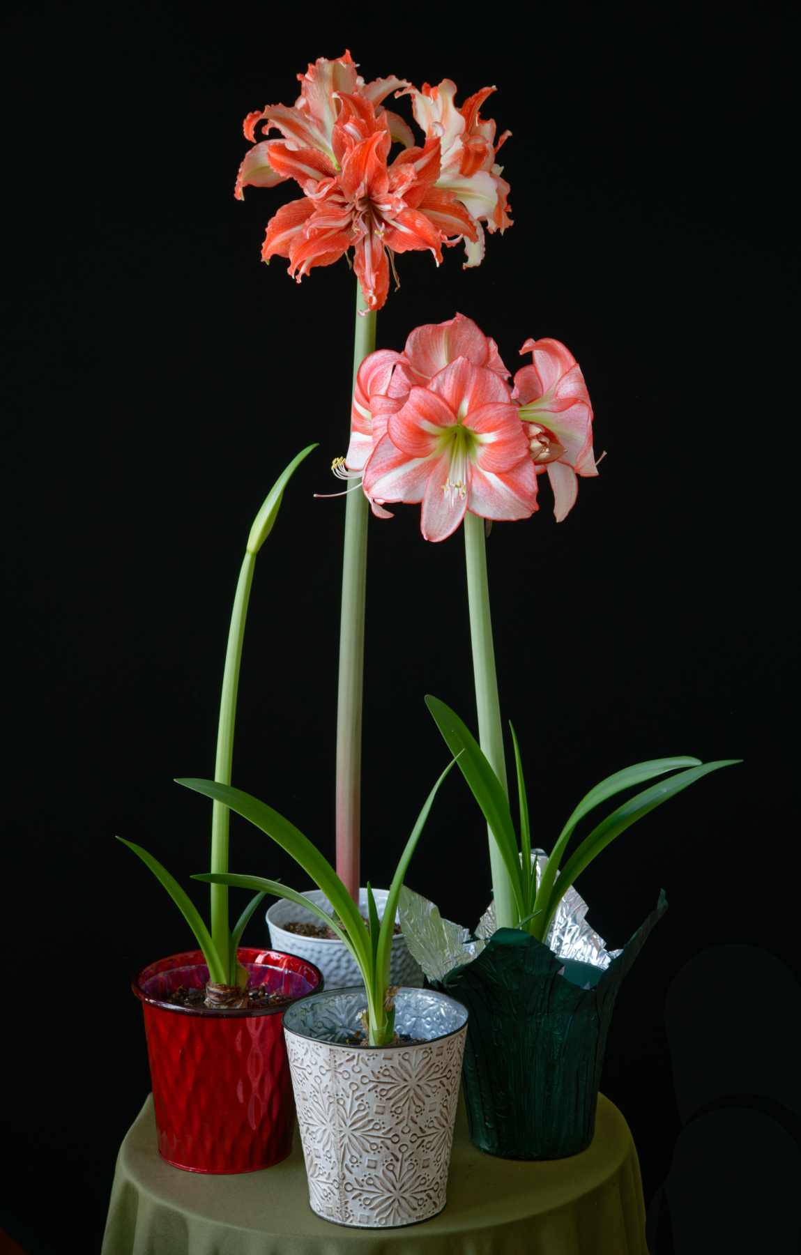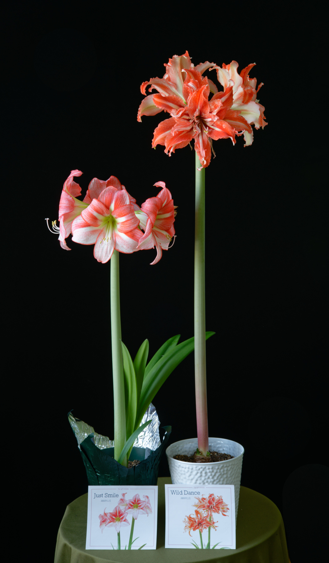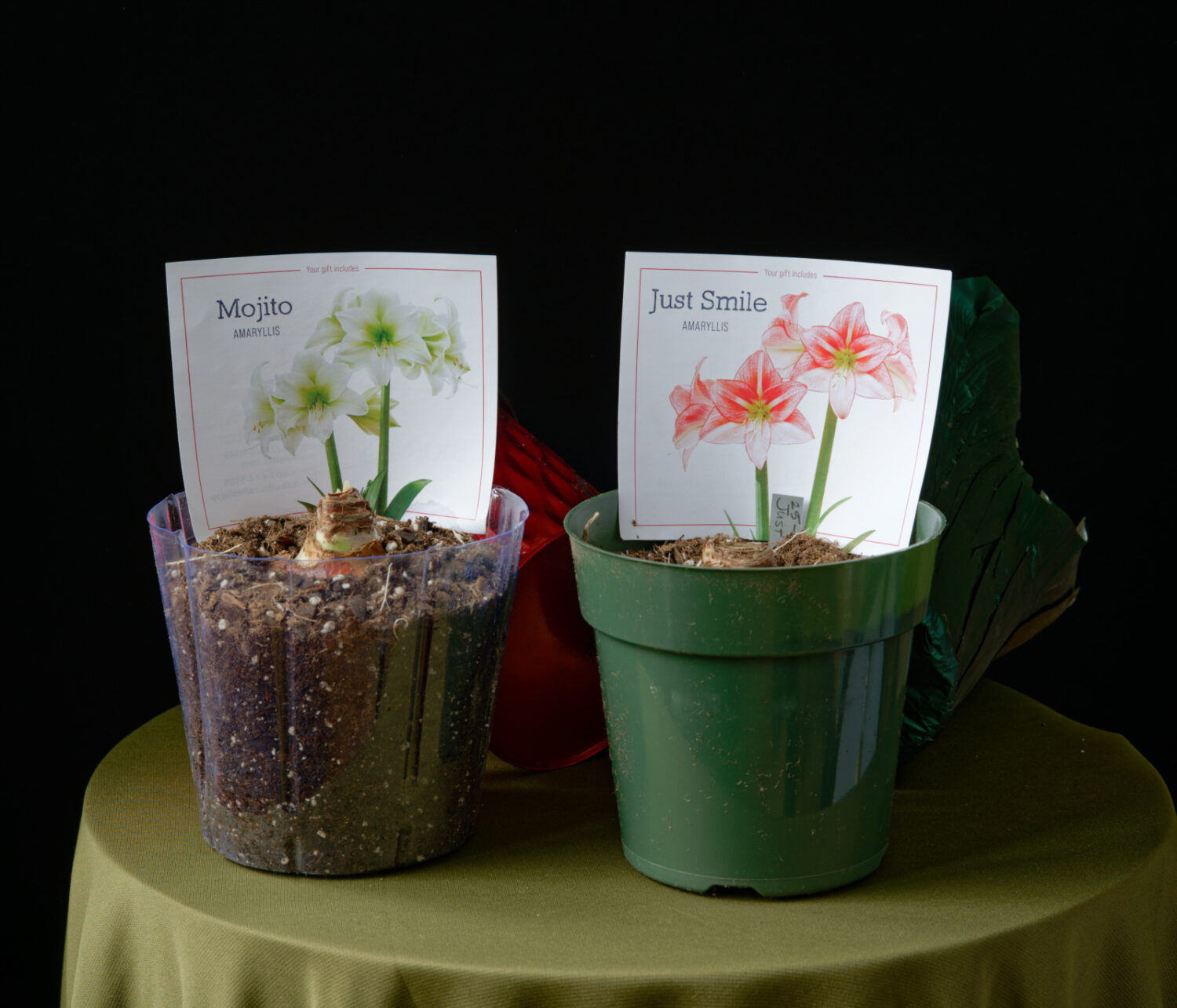 This season the only way to get certain amaryllis varieties was to buy them pre-potted for holiday sales. It seems increasingly common to find that some importers are the exclusive purveyors of certain new hybrids. It should come as no surprise that they might also be sold as part of a value added package to get those keen collectors to pony up the big bucks even when we’d rather buy a cheaper bare bulb and pot them ourselves. It worked.