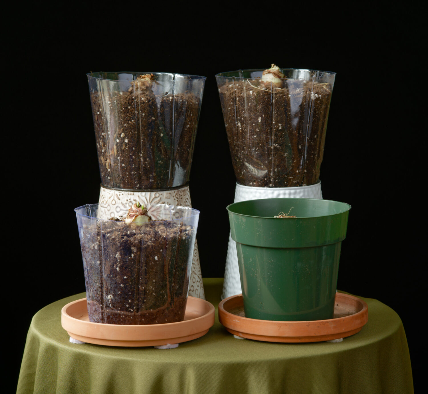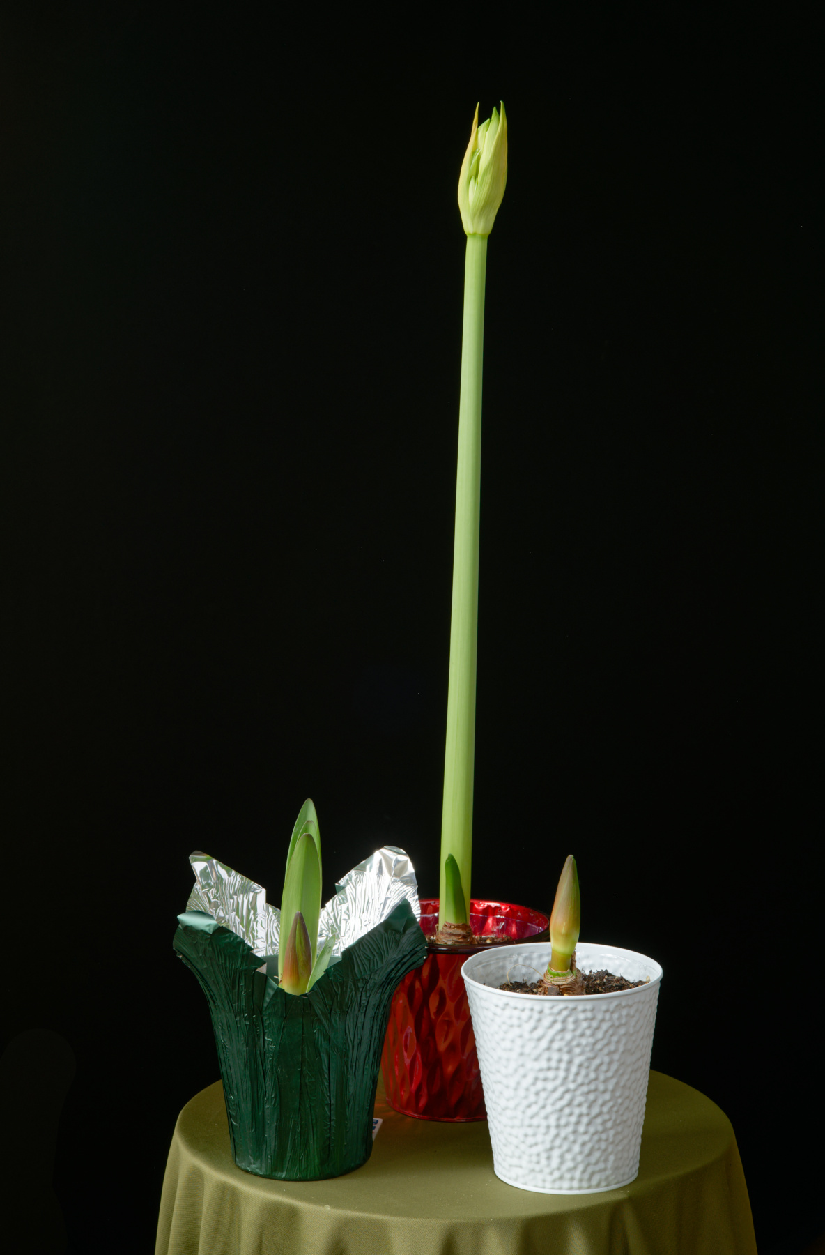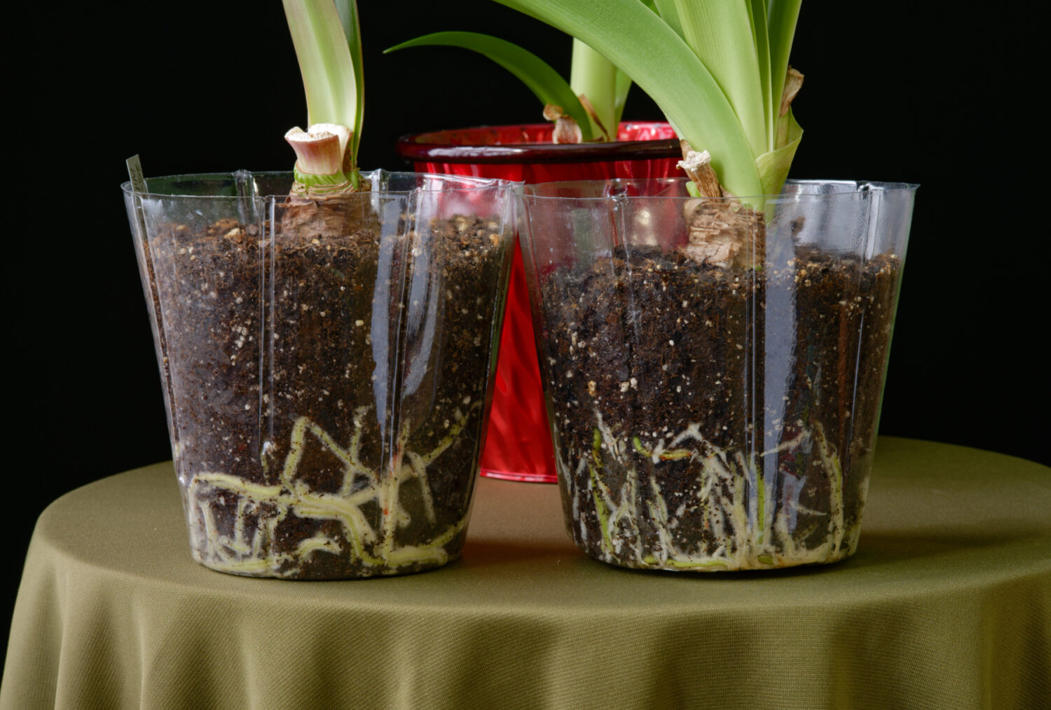 So, with ‘Mojito’ being the only one of the bunch to make two scapes, it would seem to be the best of the lot. But that’s just in terms of productivity. It would have been nice to include larger bulbs with such premium packaging. In general though, Emaryllis was quite happy to get good photos of four new varieties for our viewers. These would have made excellent gifts for the plant person in your life! A good plants person would know that the lack of drainage would be the only hinderance to long term success here, but careful watering might allow for short term success if the surface few centimeters of the media was allowed to dry. Those clear sleeves did lead to a near disaster with ‘Rising Star’ because they offer no counterweight to the tipsy scapes on their own. They do, however, allow the grower to confirm whether root growth is happening or not.